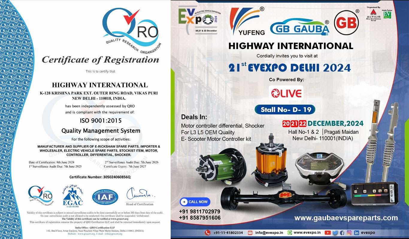We are leading electric vehicle spare parts manufacturing and our head office gb gauba and yufeng is based in vikaspuri delhi, we deels in sine wave pmsm & bldc motor & controller, differential, shocker, meter, converter, throttle & bearing...